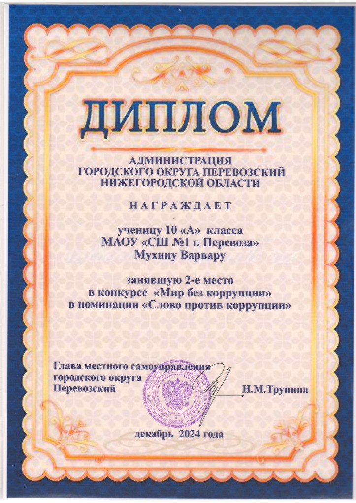 Муниципальное автономное общеобразовательное учреждение городского округа Перевозский Нижегородской области "Средняя школа № 1 г. Перевоза"
