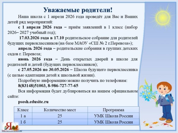 График приёма заявлений в 1 класс